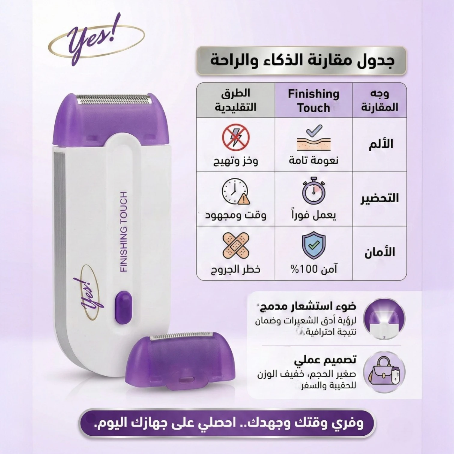 لو تبحثين عن طريقة سهلة وآمنة لإزالة الشعر بدون ألم أو احمرار، فجهاز Finishing Touch يمنحك لمسة نهائية ناعمة فورًا – في المنزل أو أثناء التنقل.